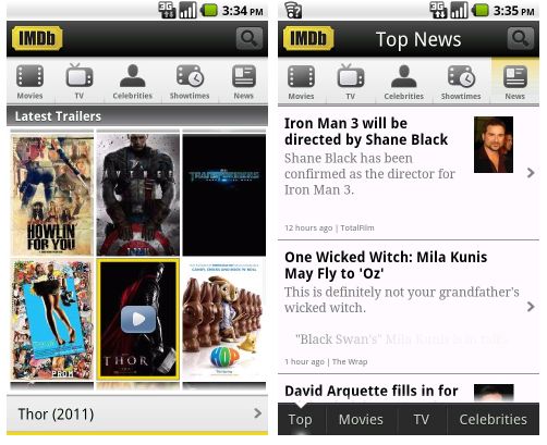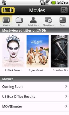 The new IMDb app for Android is available as a free download from the Android Market.